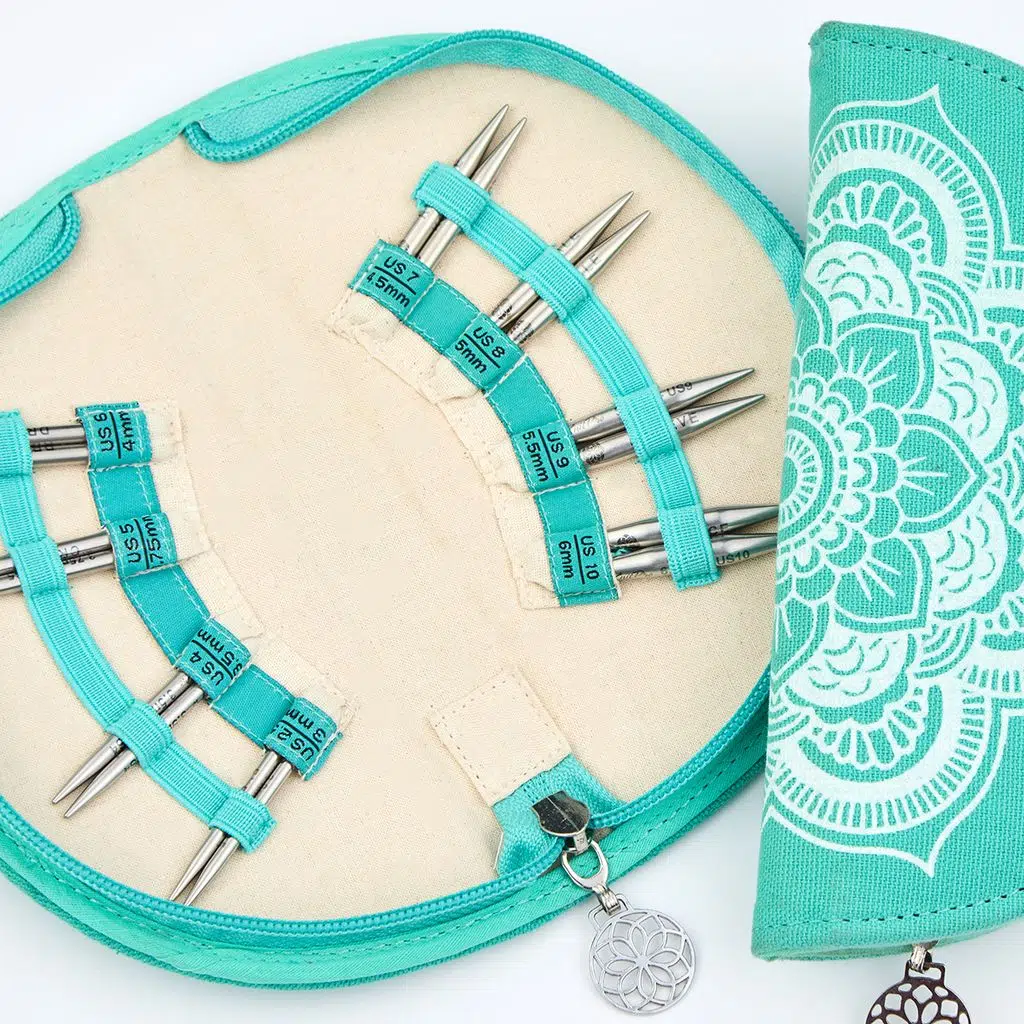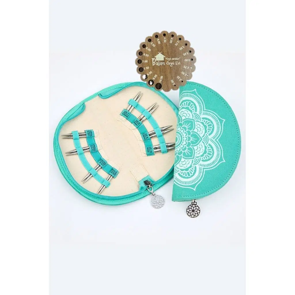 Mindful Koleksiyonunun Değiştirilebilir Dairesel İğneleri, 8 boyutta (US2.5-10) akıllıca paketlenmiş setler halinde mevcuttur ve 4 kordon ve aksesuarlar içerir.