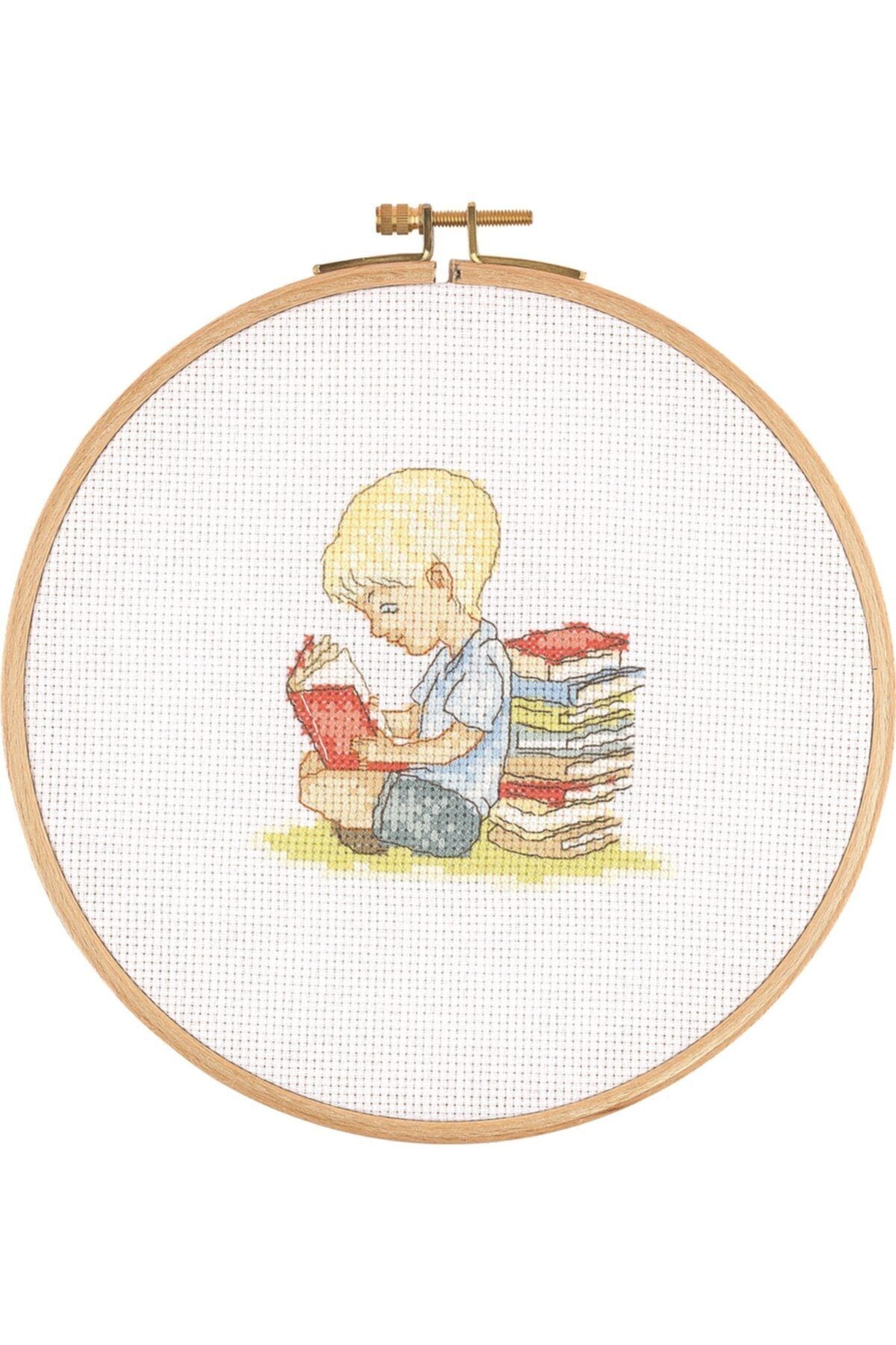 Tuva Kanaviçe Ahşap Kasnaklı Kit Kitap Okuyan Çocuk E2003 20 Cm